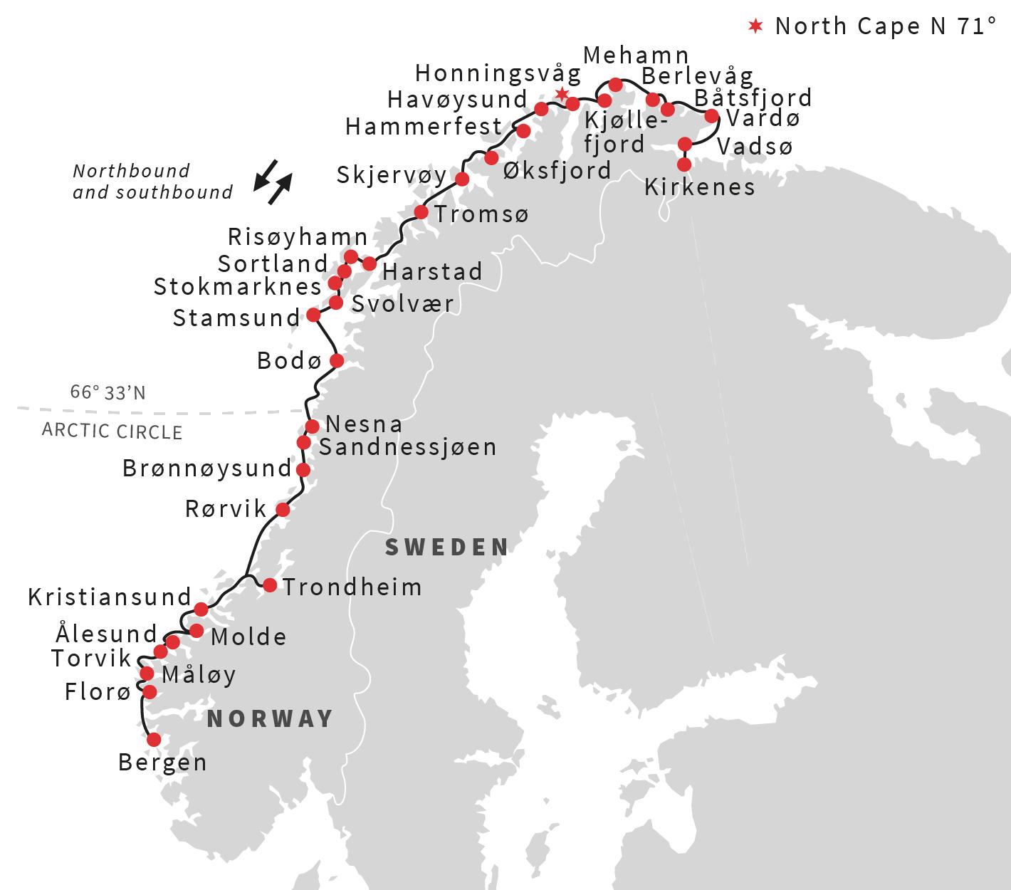 Norway ferry map