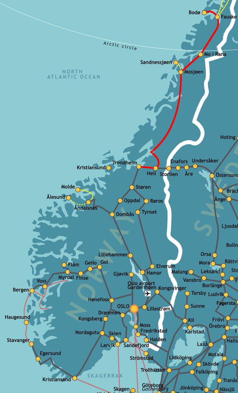 Norway northern railway map